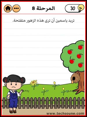 تريد ياسمين أن ترى هذه الزهور متفتحة Brain Test 2 مزرعة ياسمين حل المستوى 8 الداعم الناجح