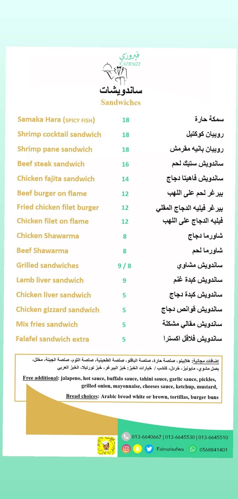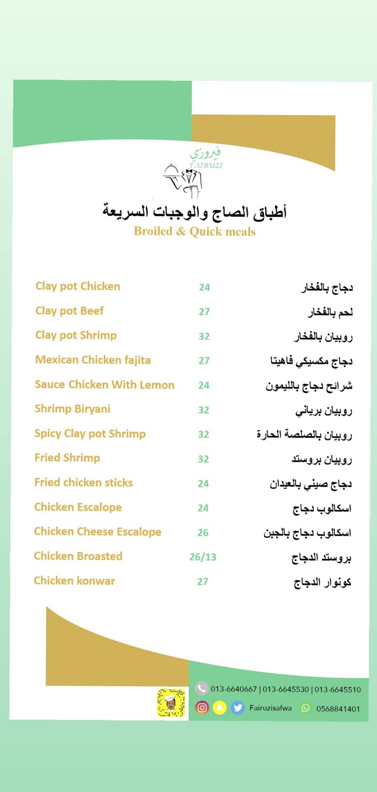 مطعم فيروزي Fairuzi الأسعار المنيو الموقع افضل المطاعم السعودية