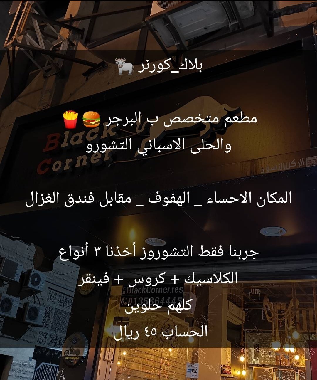 مطعم بلاك كورنر الاحساء الاسعار المنيو الموقع مطاعم و كافيهات الشرقية